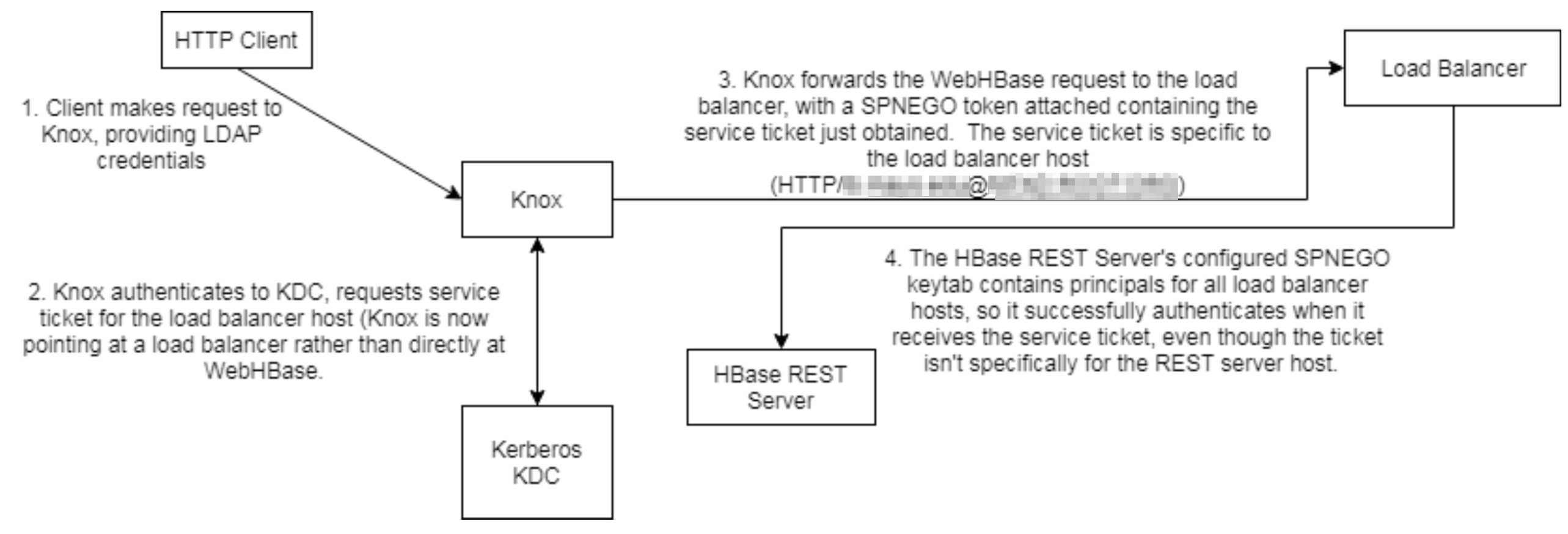 - This service ticket is specific to the host that Knox is connecting to, e.g. HTTP/webhbase.example.com