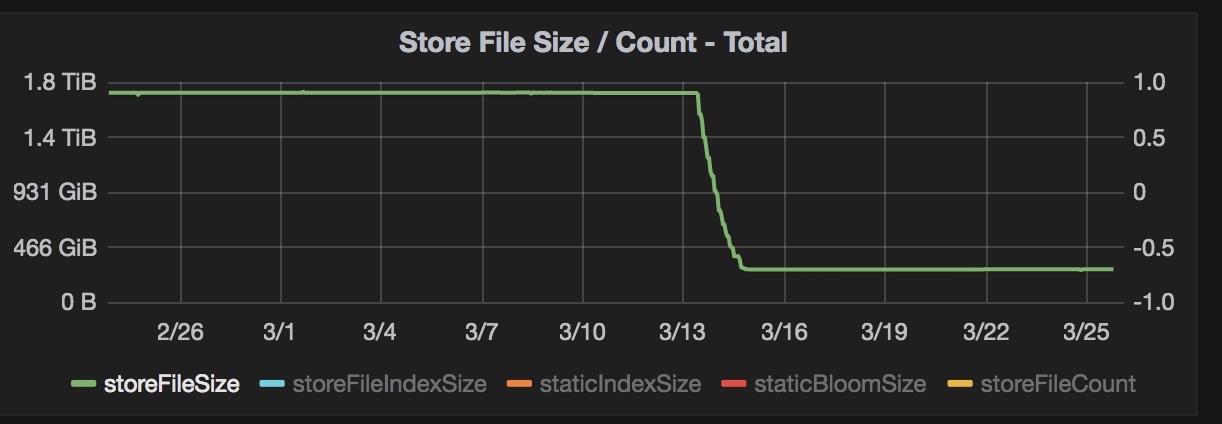 Below are some images from some clusters where testing was done with Snappy compression. The charts show a variety of metrics from storage size to system metrics.